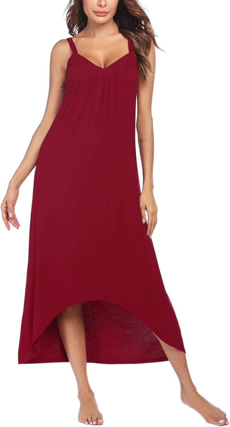 Women’s Sleeveless Long Nightgown Full Slip Nightdress Soft Sleepdress V Neck Nightshirt